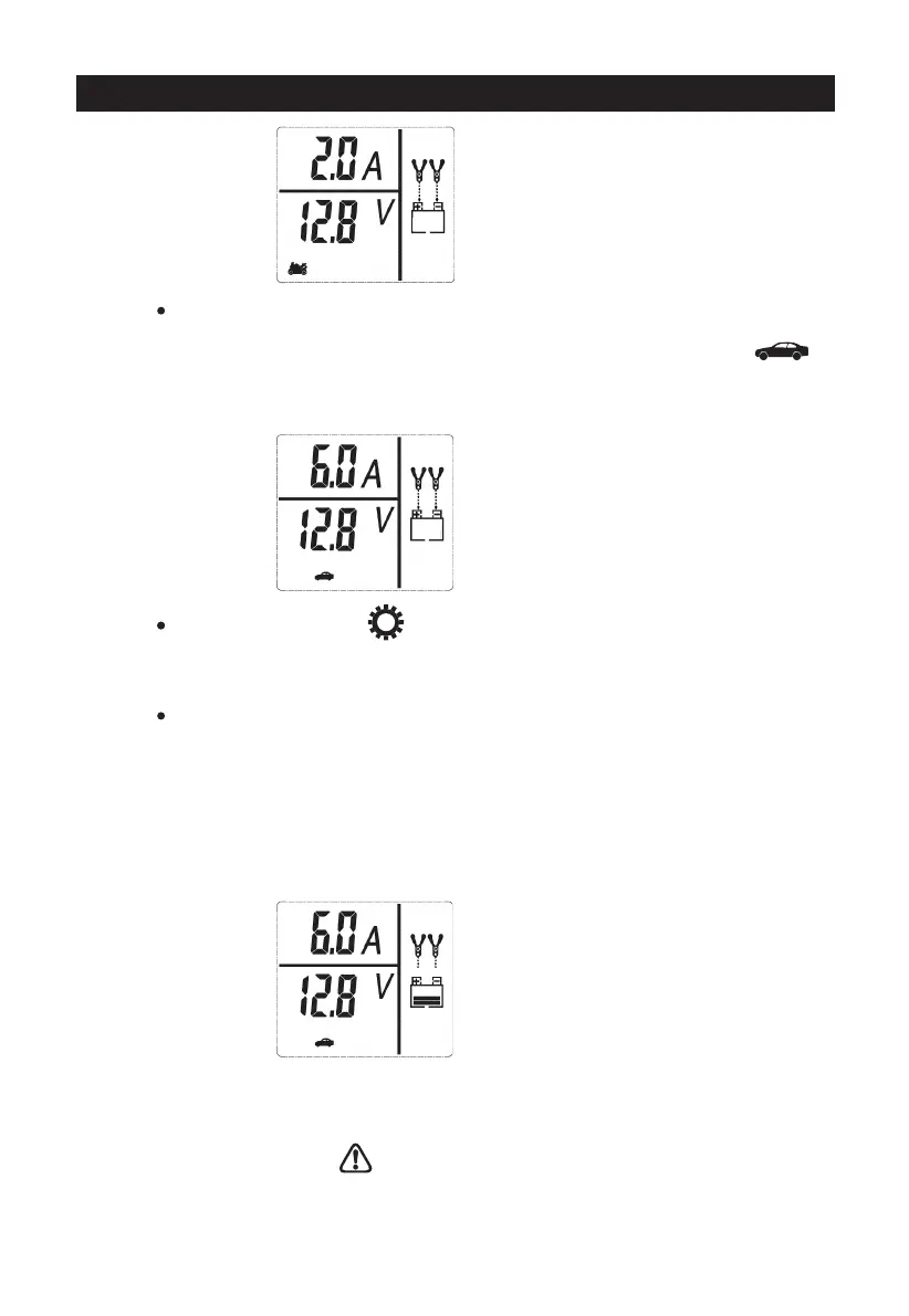 le mode actionné, “6,0A” (sur la partie haute du LCD) et le logo « voiture »