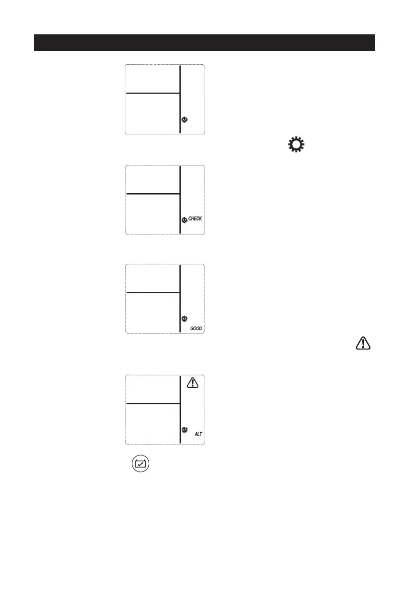 - Se o alternador está a funcionar correctamente, o indicador “GOOD” aparece no