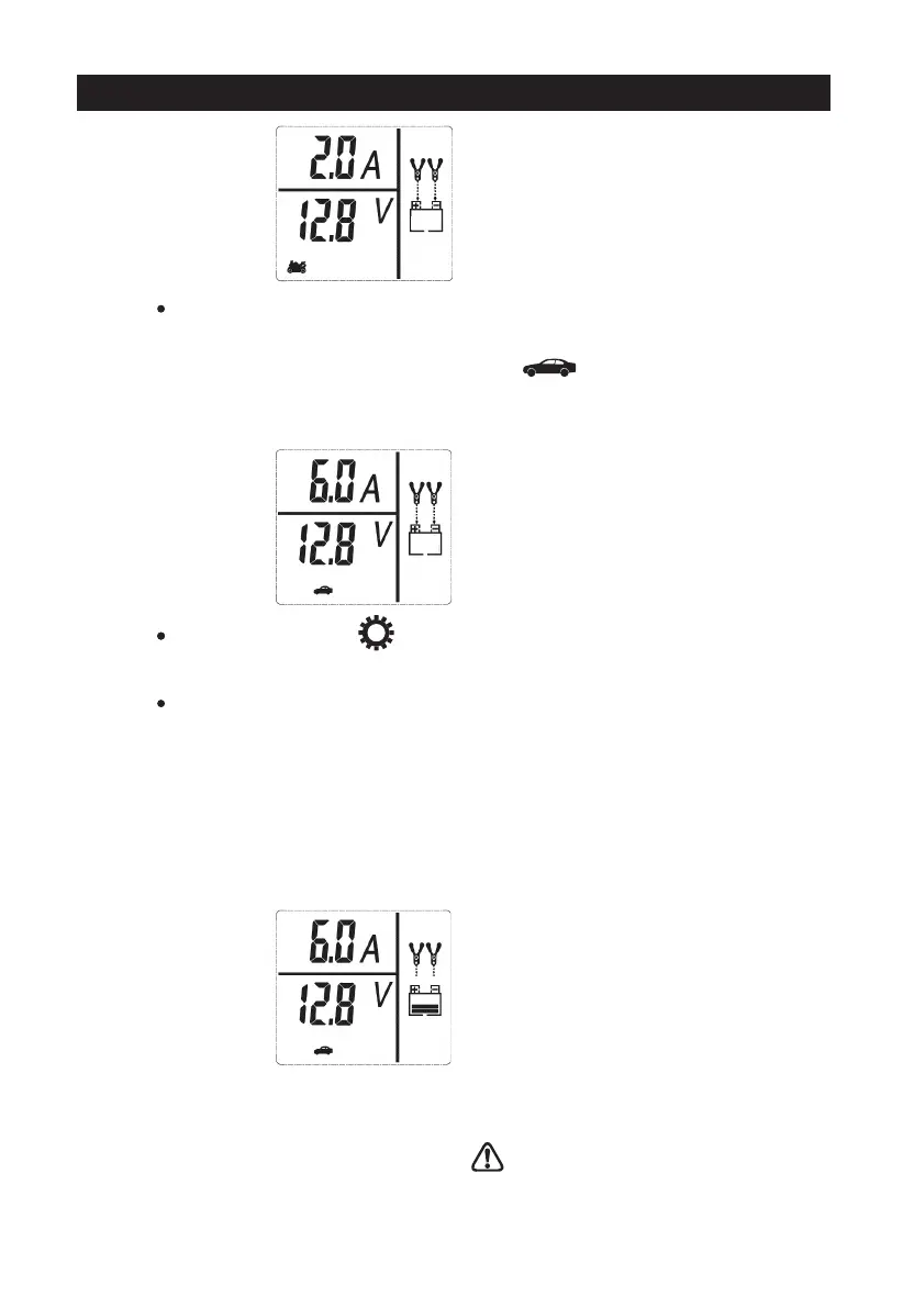 podłączonego akumulatora. Przed rozpoczęciem ładowania, ikonki zacisków,