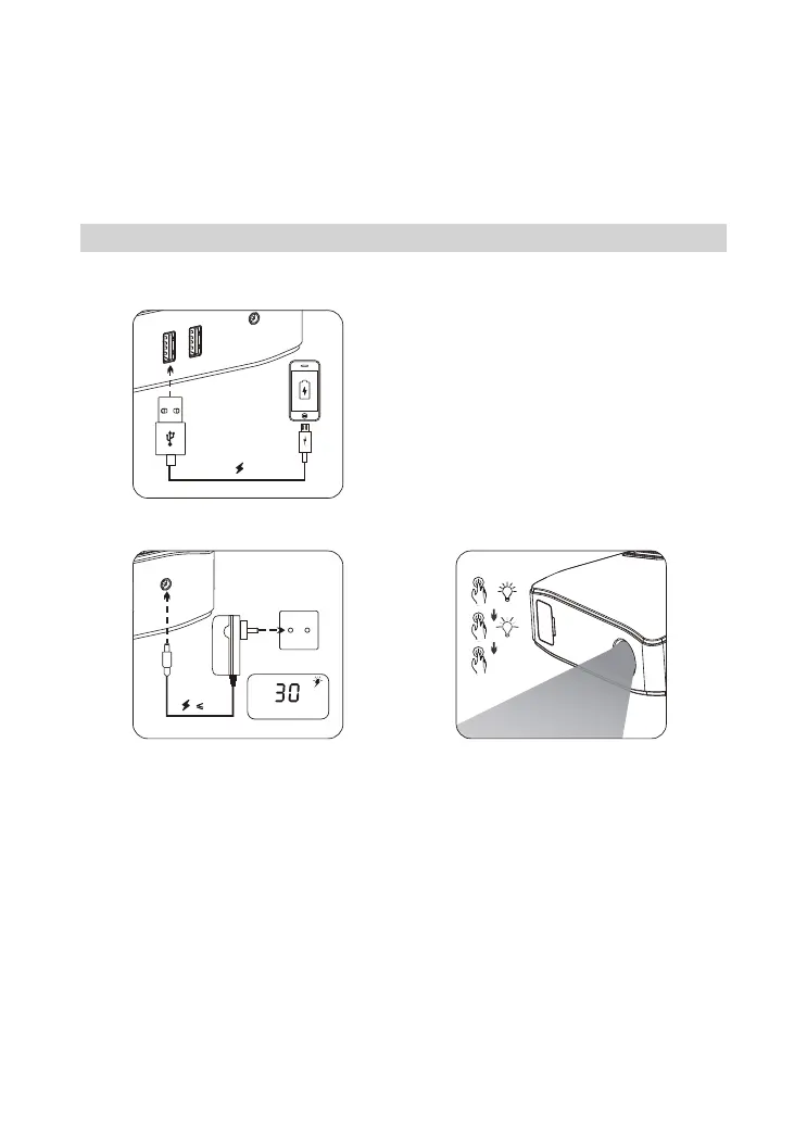 L’appareil démarre la charge. La sortie USB