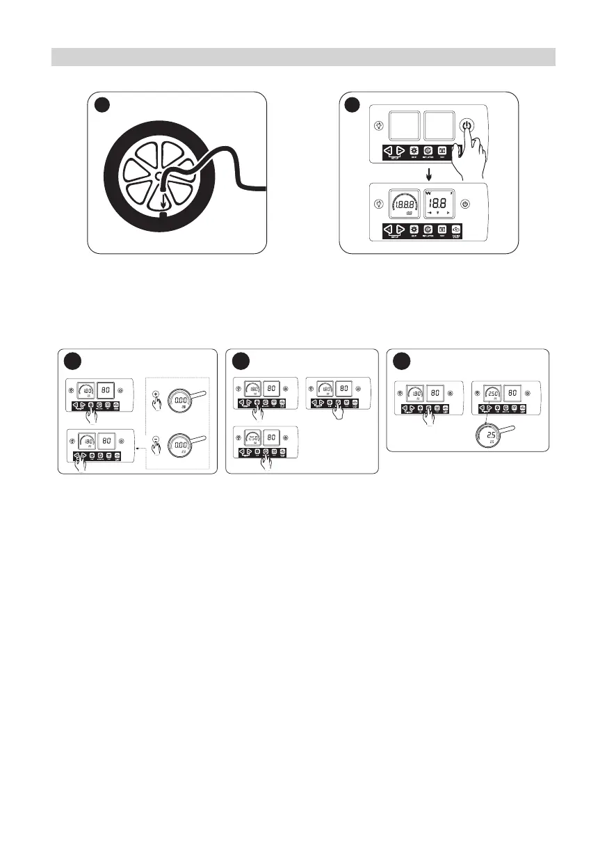 2,5 bar e poderá premir o botão de encher para iniciar. Depois de chegar a 2,5 bar, o aparelho
