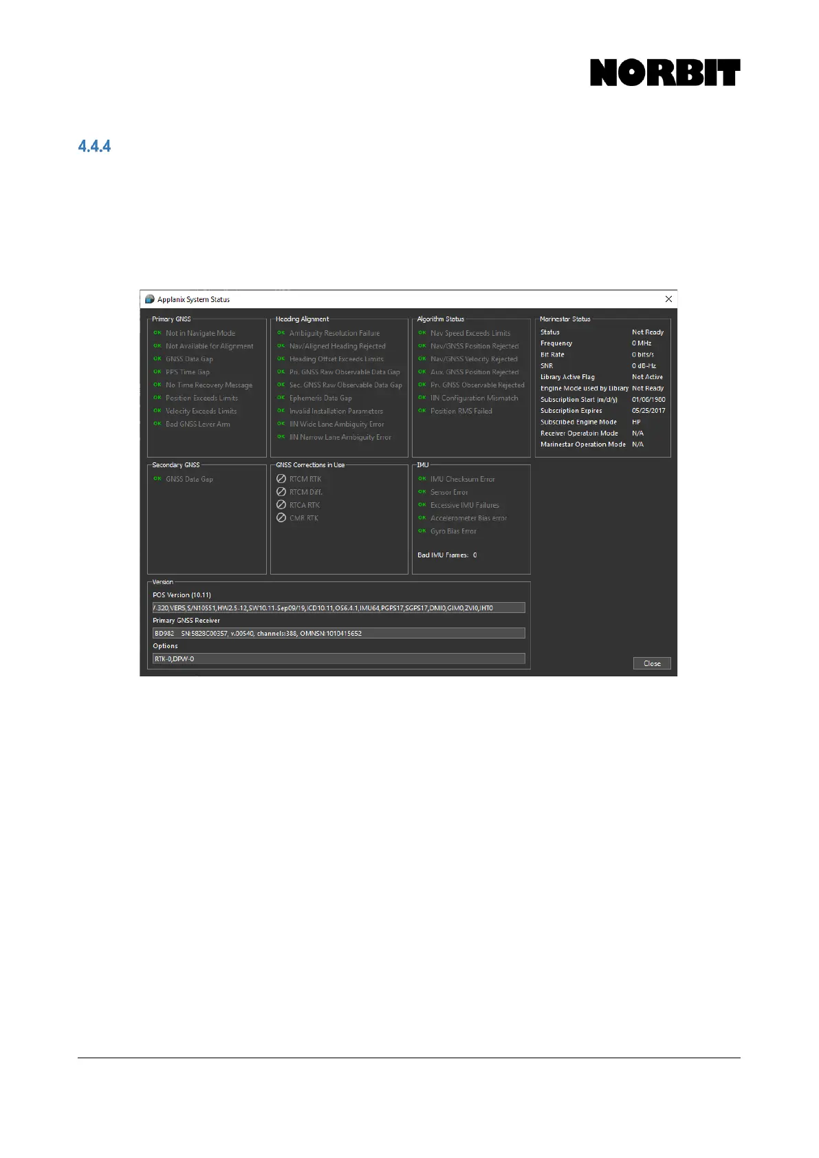Additionally, the Marinestar Status, and importantly the subscription expiry date, is shown on the