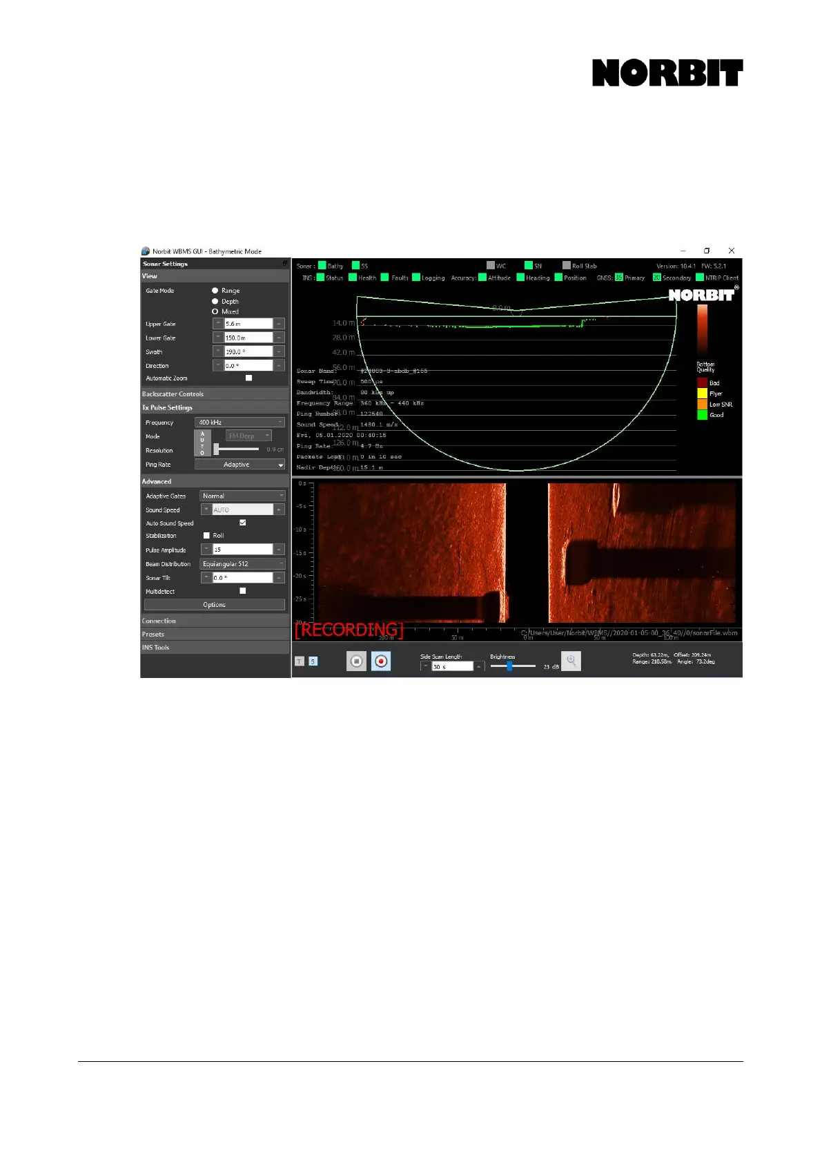 image below shows an example of the main display with both raw sonar and GNSS/INS data being