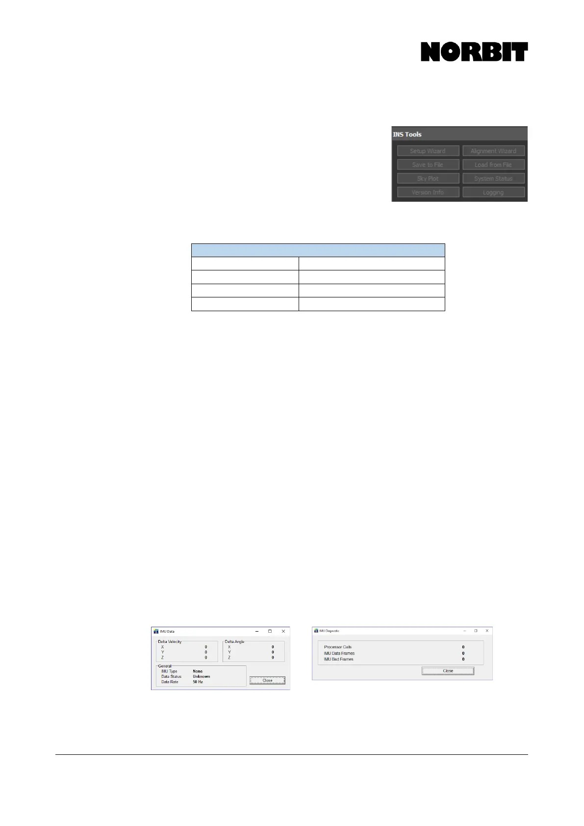 bent IMU cable and SIU socket pins. If you find bent pins, contact NORBIT Support for