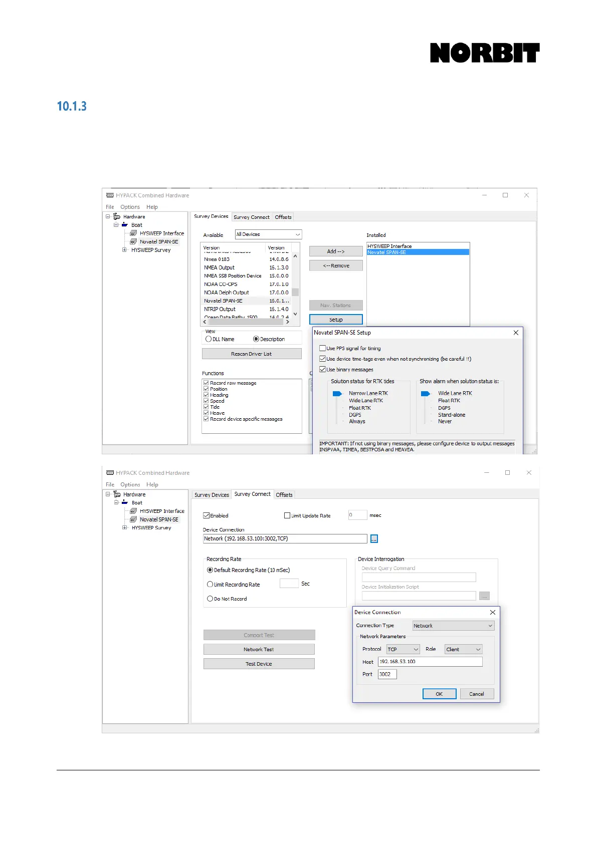 In Survey Devices, add the Novatel SPAN-SE device and configure it as shown below.