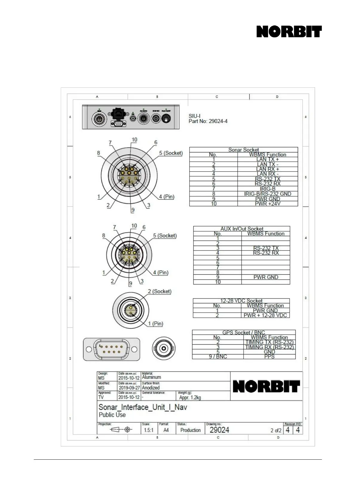 WBMS Sonar Interface Unit (SIU) Socket Pin Description (PN 29024)