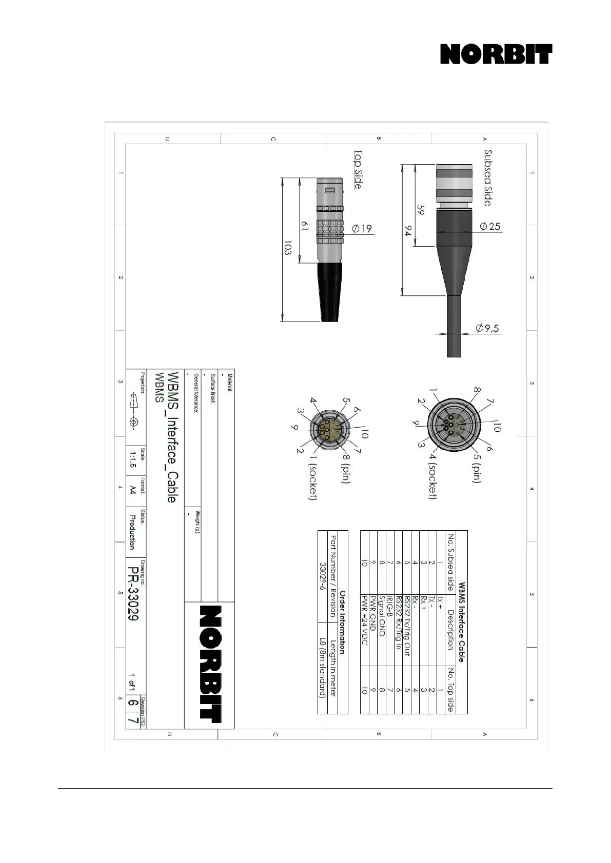 NORBIT WBMS - WBMS Interface Cable Pin Description (PN 33029)
