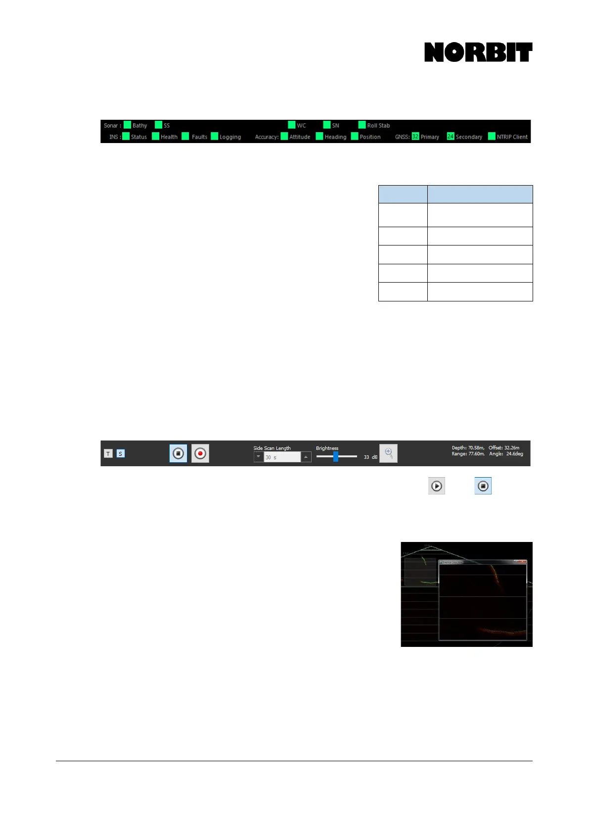 used to start/stop sonar pinging. Once stopped, the Stop button changes to a Play button. Pinging