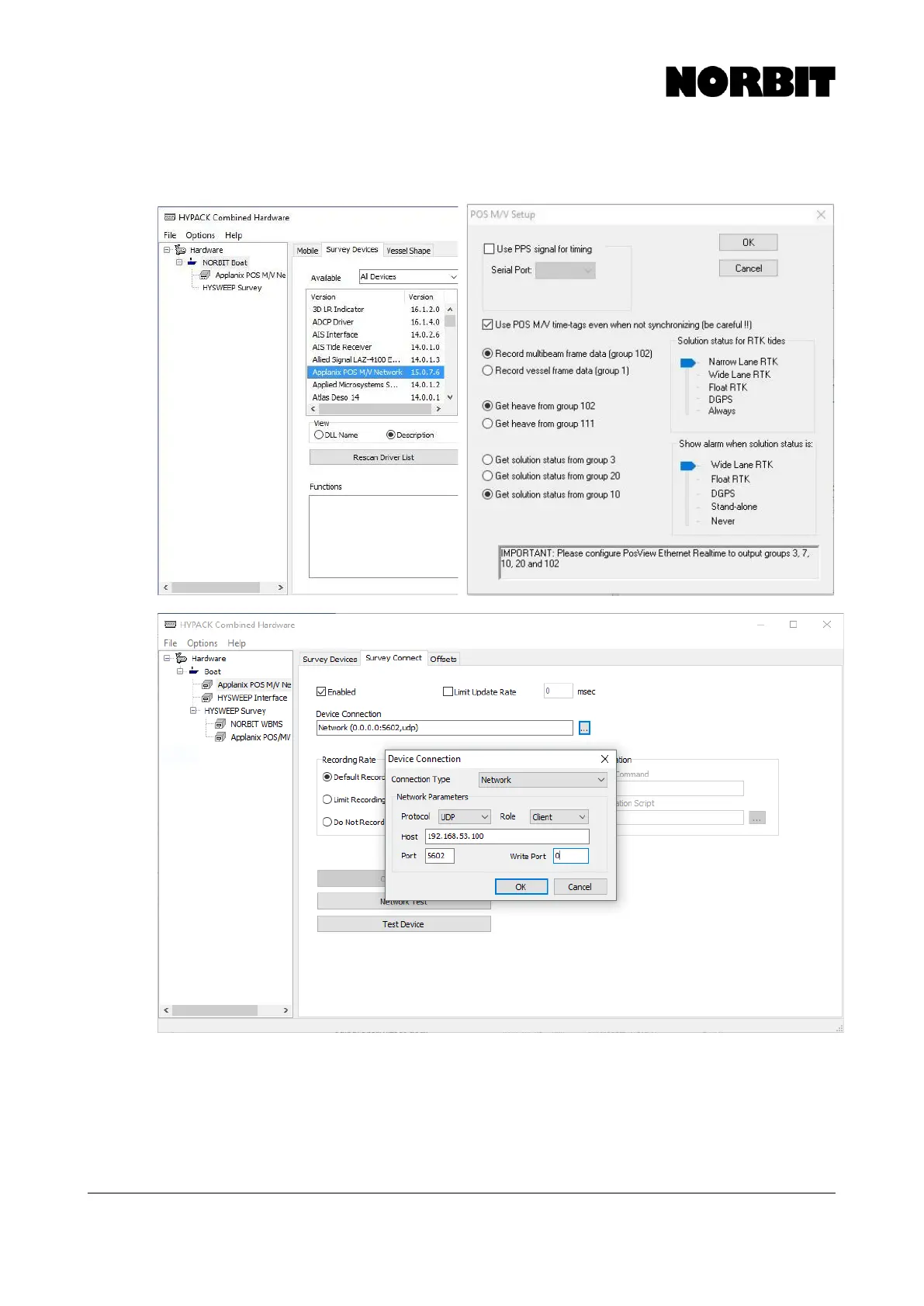 In Survey Devices, add the Applanix POS M/V Network device and configure it as shown below.