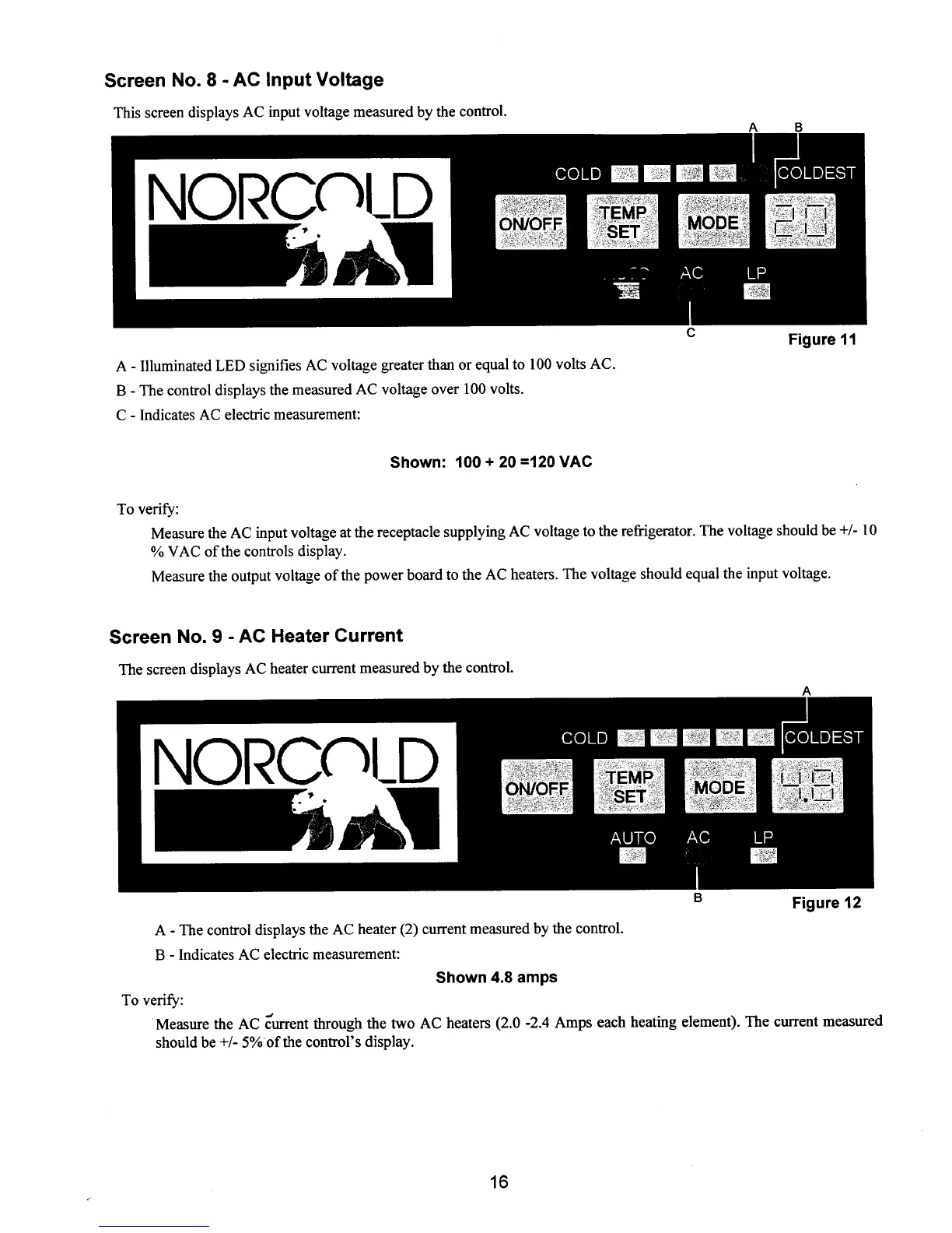 Norcold 1200LR - AC Input Voltage; AC Heater Current