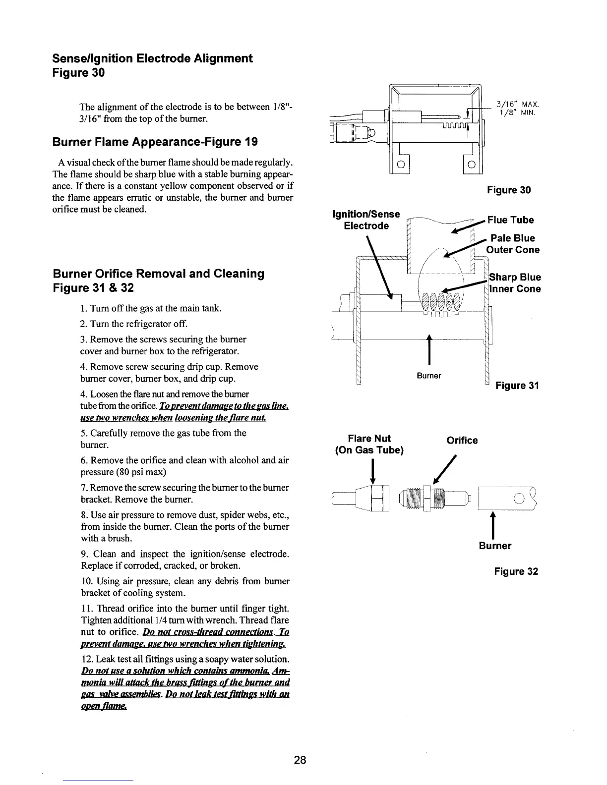 Norcold 1200LR - Sense;Ignition Electrode Alignment; Burner Flame Appearance; Burner Orifice Removal and Cleaning