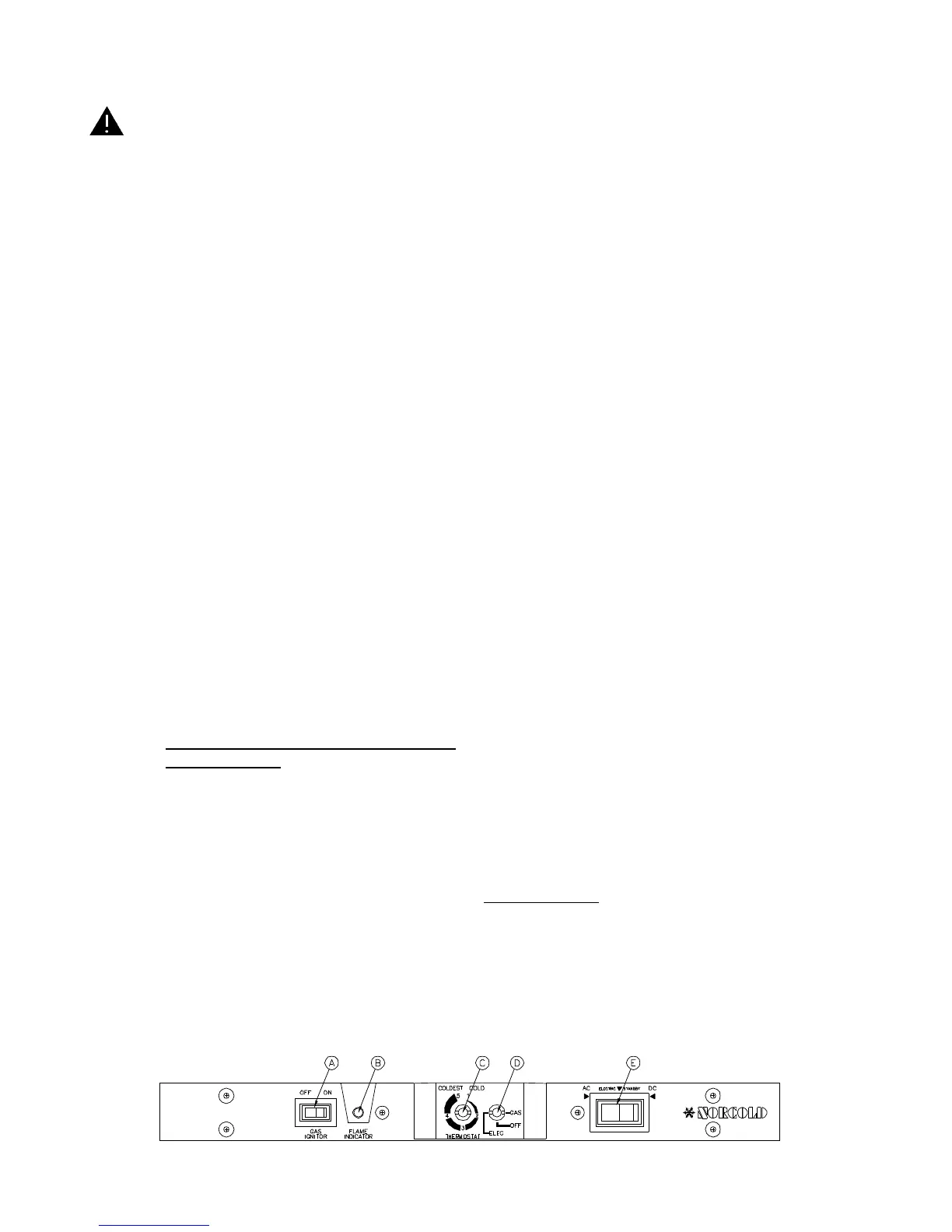 DO NOT HOLD GAS VALVE (D) IN MORE THAN 30 SECONDS. IF FLAME IS NOT INDICATED WITHIN