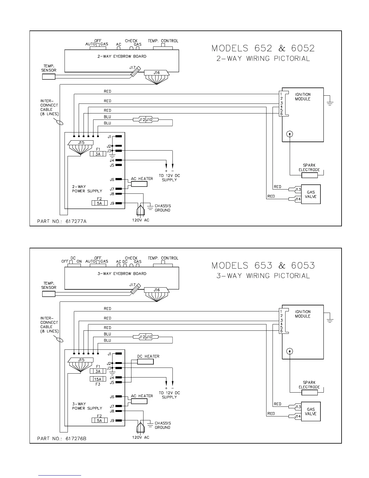 Norcold 600 - Wiring Pictorials; Models 652 & 6052 2-Way Wiring Pictorial; Models 653 & 6053 3-Way Wiring Pictorial