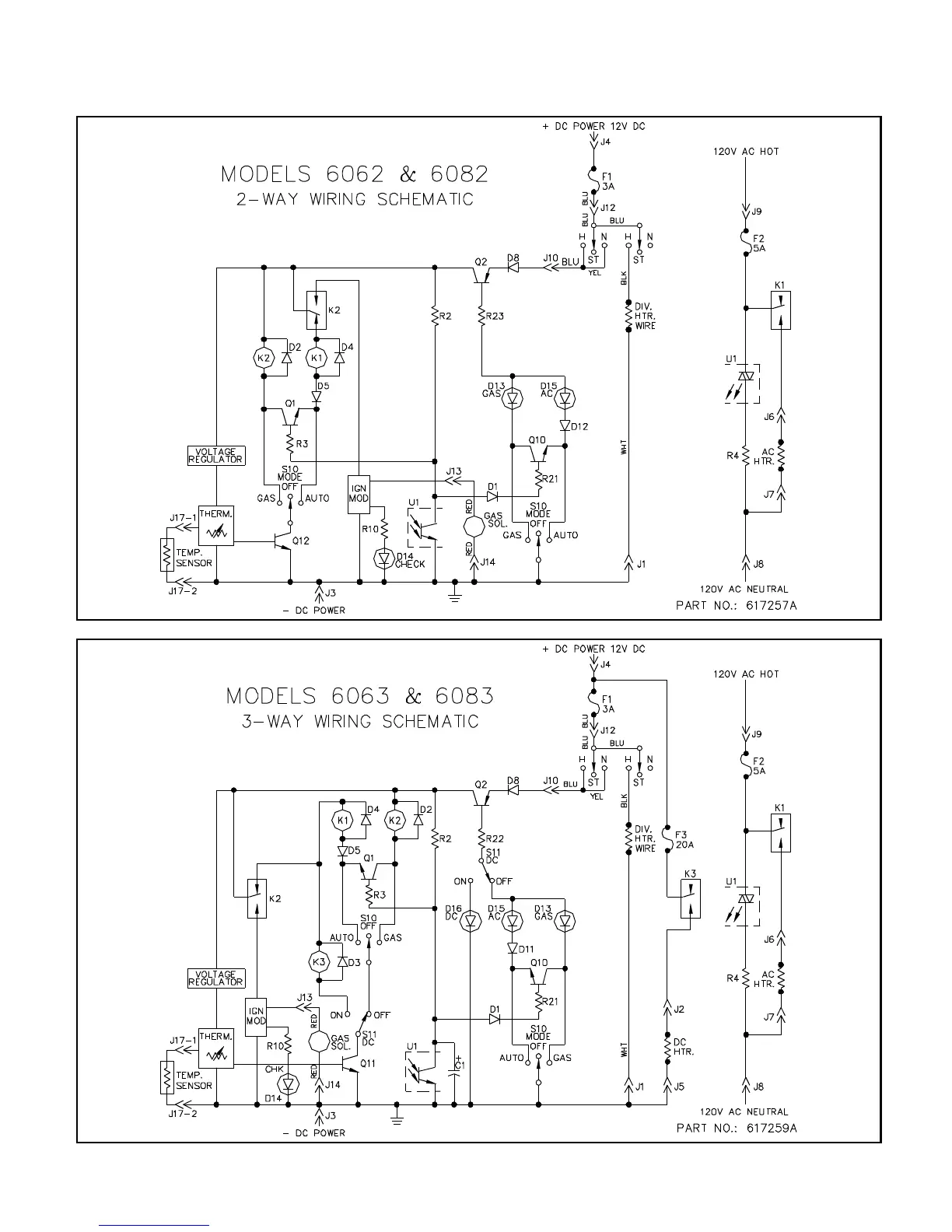 Norcold 600 - Wiring Schematics for Earlier Versions (Models 6062;6082 and 6063;6083); Models 6062 & 6082 2-Way Wiring Schematic; Models 6063 & 6083 3-Way Wiring Schematic