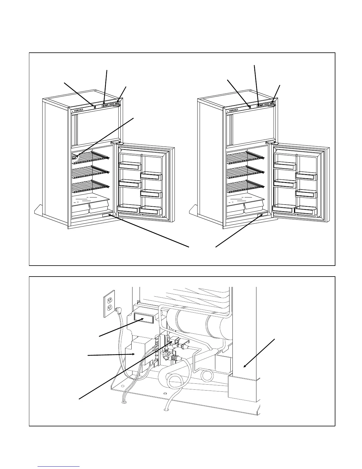 Norcold 600 - Location of Controls; Front View Control Identification; Rear View Component Identification
