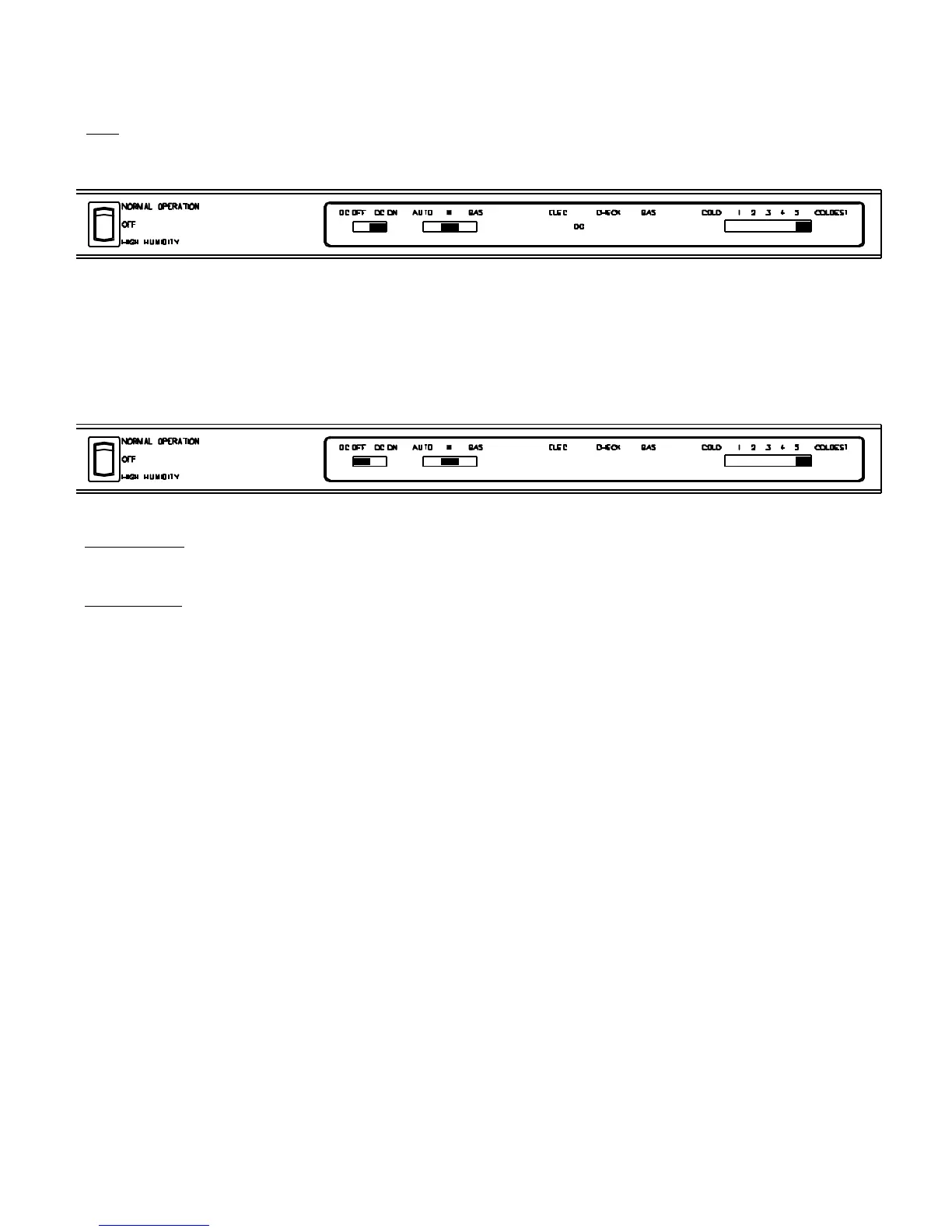 NORMAL-STORAGE-HIGH HUMIDITY switch should be set to the STORAGE position.