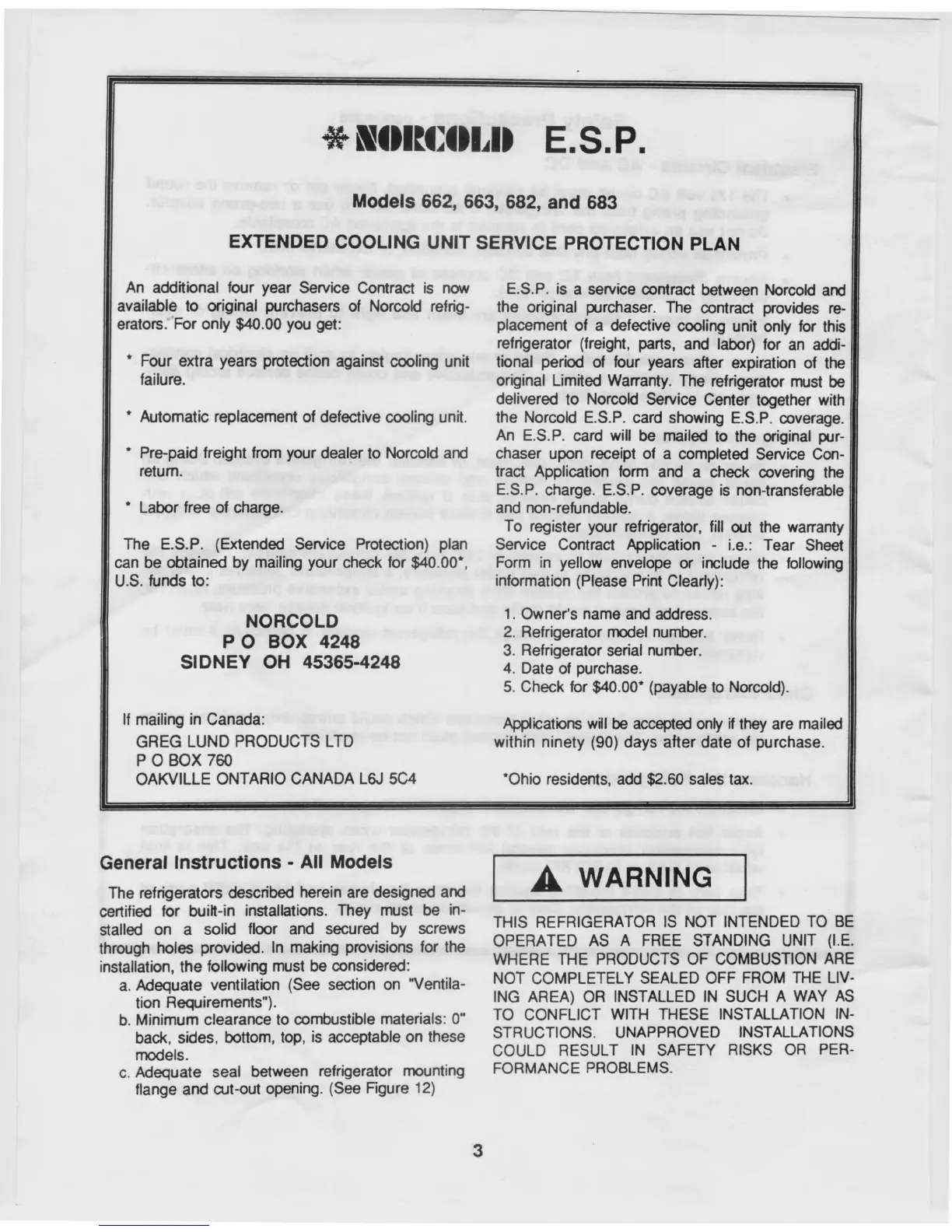 the Norcold E.S.P. card showing E.S.P. coverage.