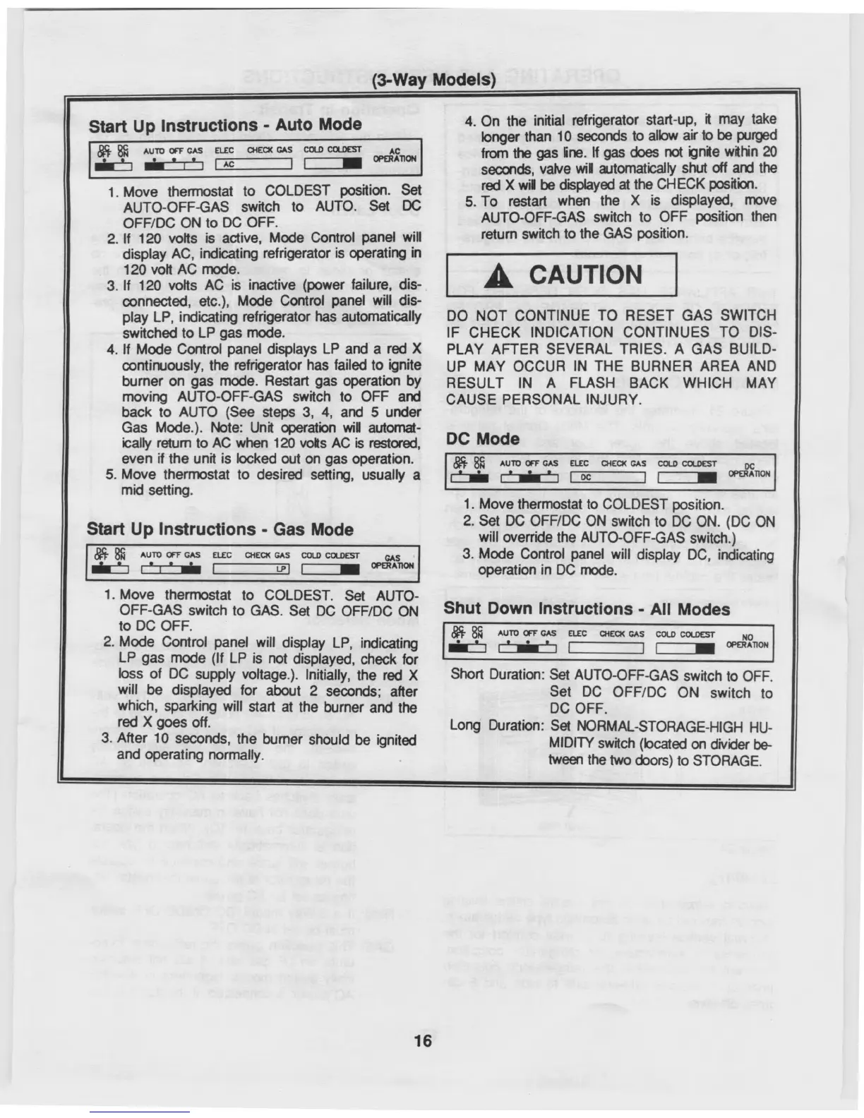 84- 8,9 AUTO OFF GAS ELEC CHECK GAS COLD COLDEST