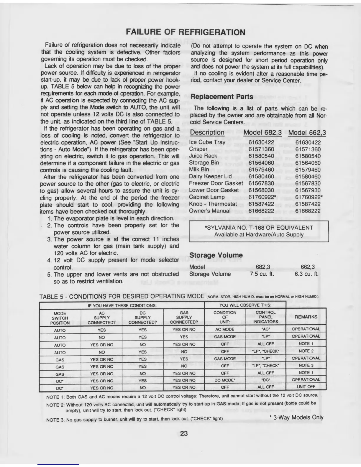 TABLE 5 - CONDITIONS FOR DESIRED OPERATING MODE