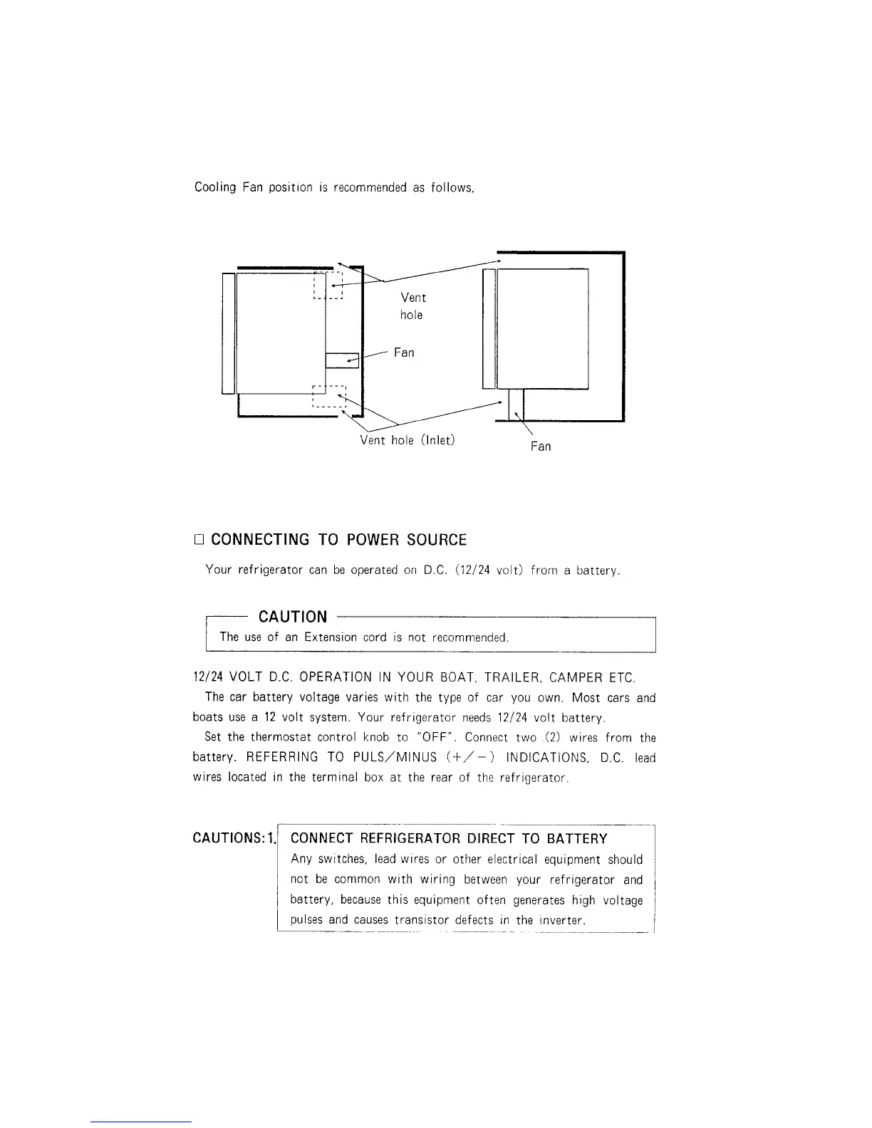 Norcold DC-440 - Connecting to Power Source; DC Operation and Wiring