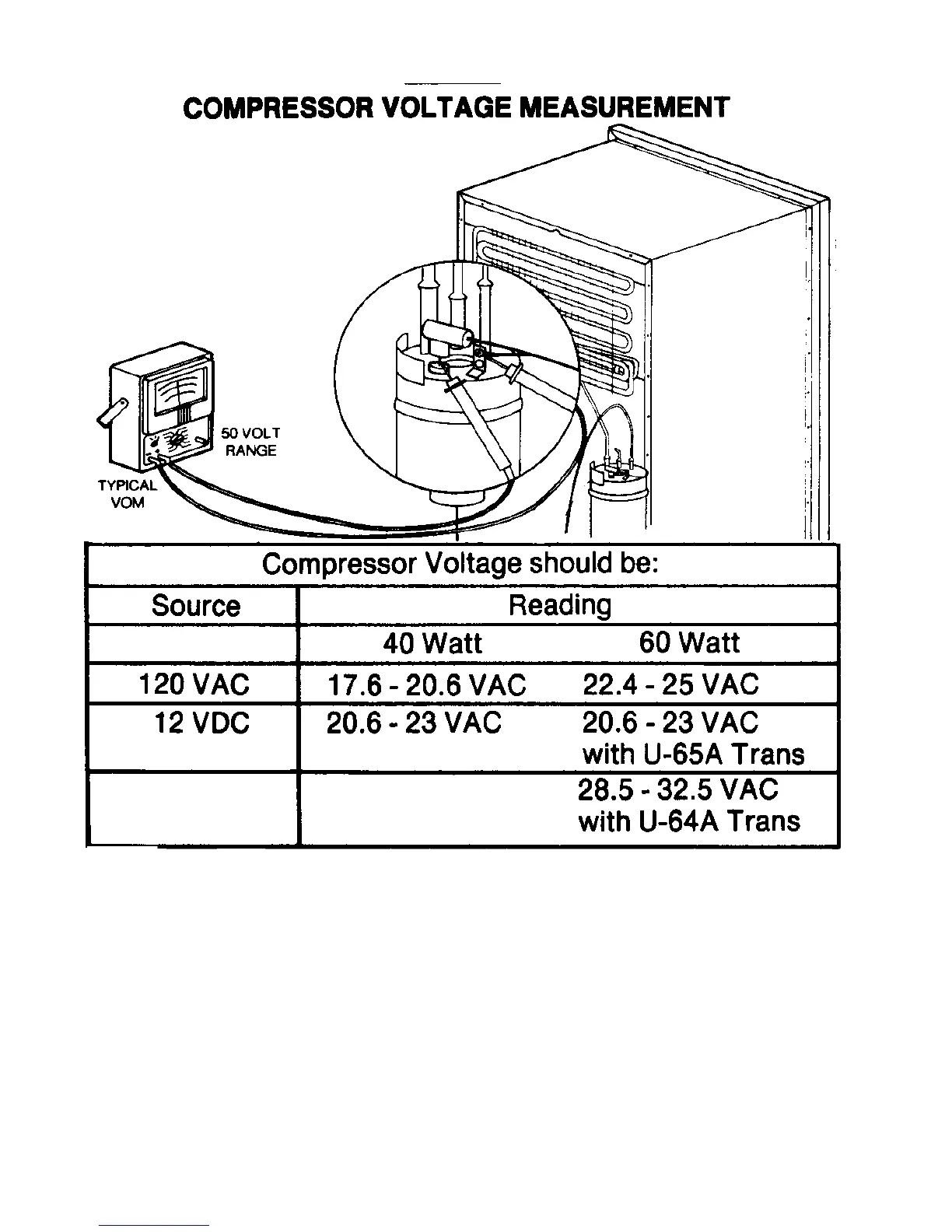 Norcold DE 728 - COMPRESSOR VOLTAGE MEASUREMENT
