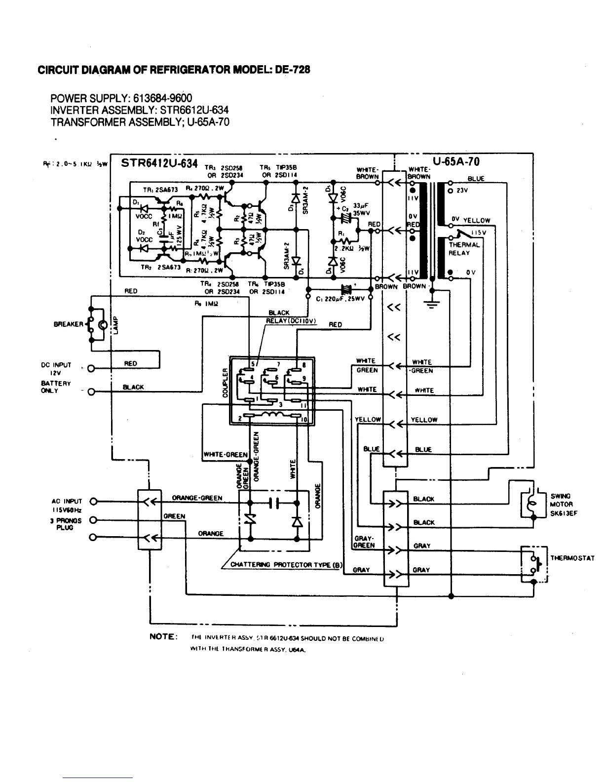 Norcold DE 728 - CIRCUIT DIAGRAM: NORCOLD DE-728 (U-65 A-70)