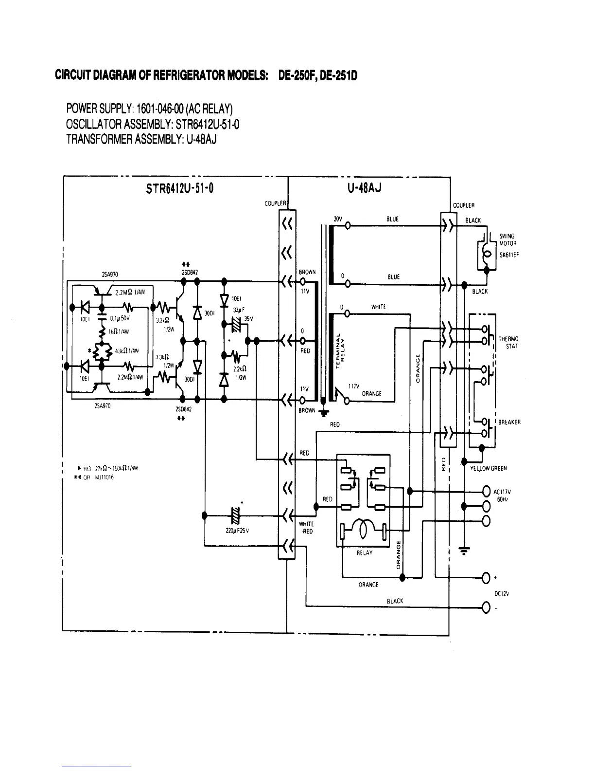Norcold DE 728 - CIRCUIT DIAGRAM: NORCOLD DE-250 F, DE-251 D