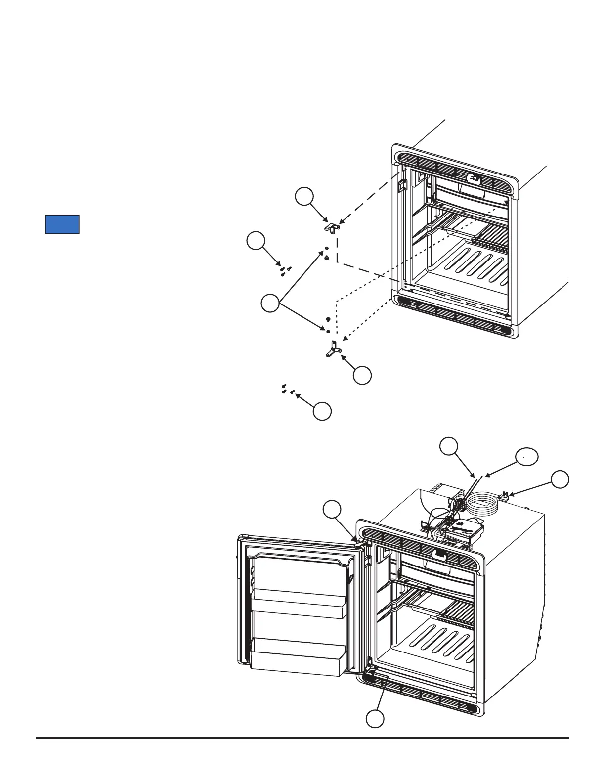 Ce réfrigérateur est équipé de charnières de porte qui peuvent être placées dans l’angle opposé pour changer le sens d’ouverture de la