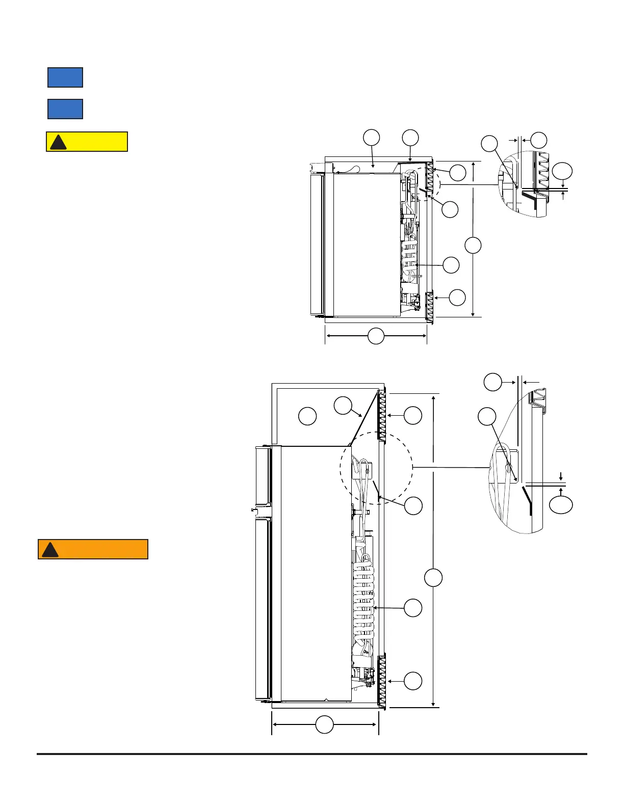 La distance entre l’avant du disjoncteur et l’arrière du condenseur [22] (voir Art02340) est de : 19 11/32 po pour le modèle
