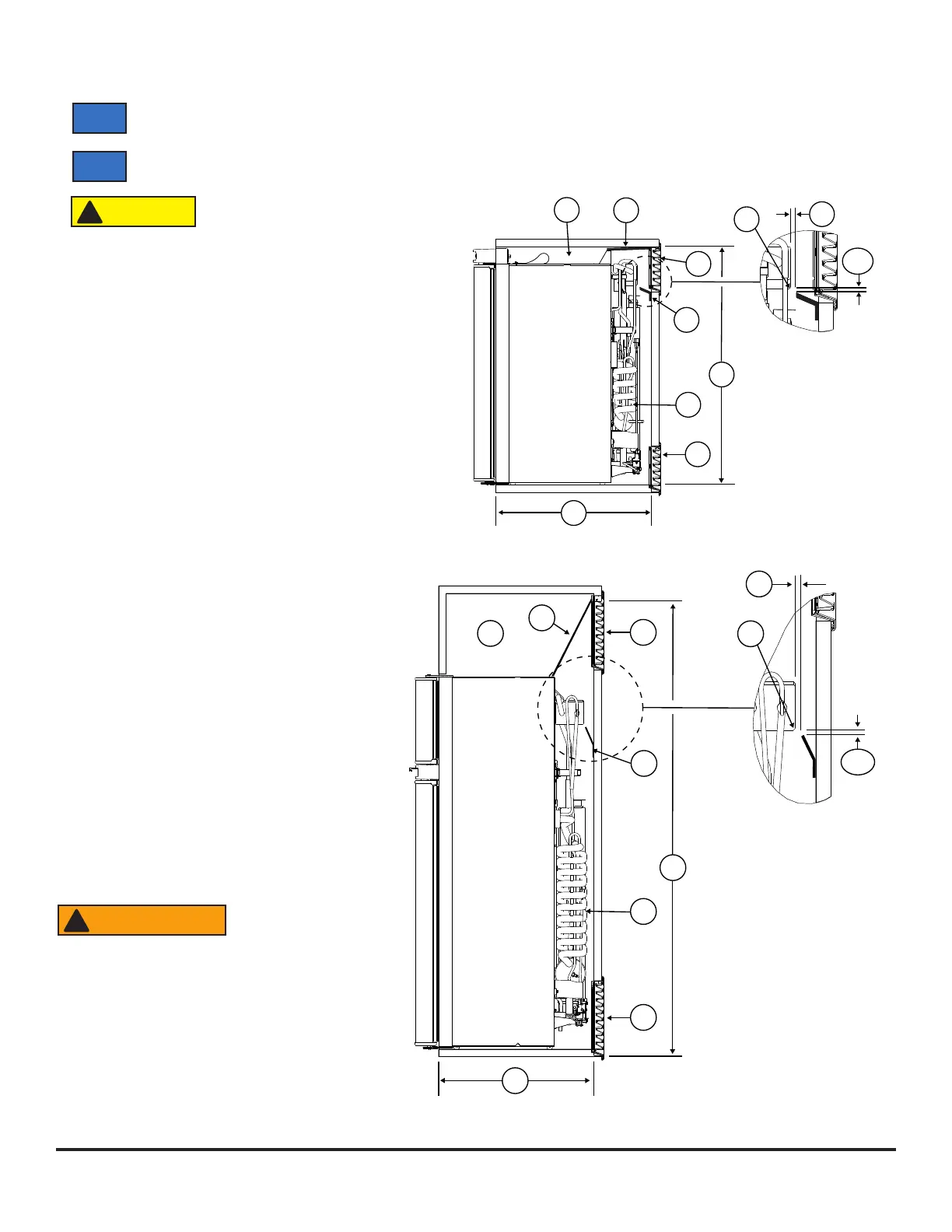 La distance entre l’avant du disjoncteur et l’arrière du condenseur [22] (voir Art02340) est de : 19 11/32 po pour le modèle