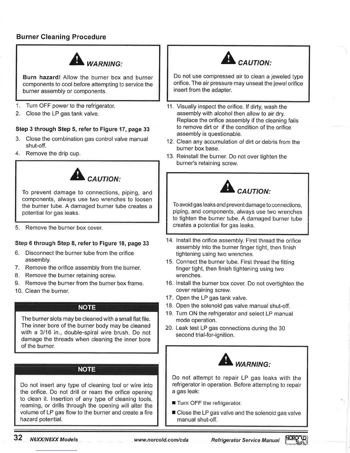 Norcold N61X - LP Gas Burner Maintenance; Burner Cleaning Procedure