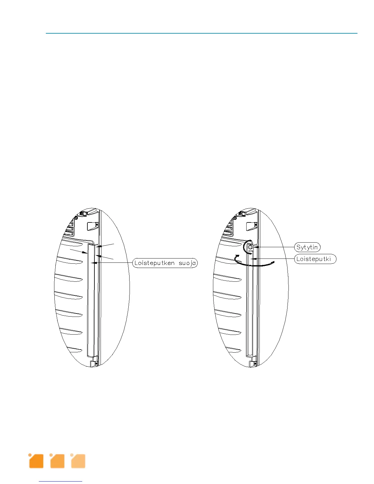 vetämälla se sitten suoraan ulos. Uusi loisteputki työnnetään suoraan sisään, ja sitä käännetään