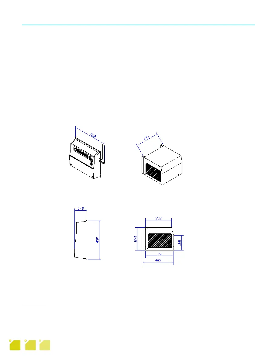 Utvändiga mått, varm del b440 x h290 x d400mm