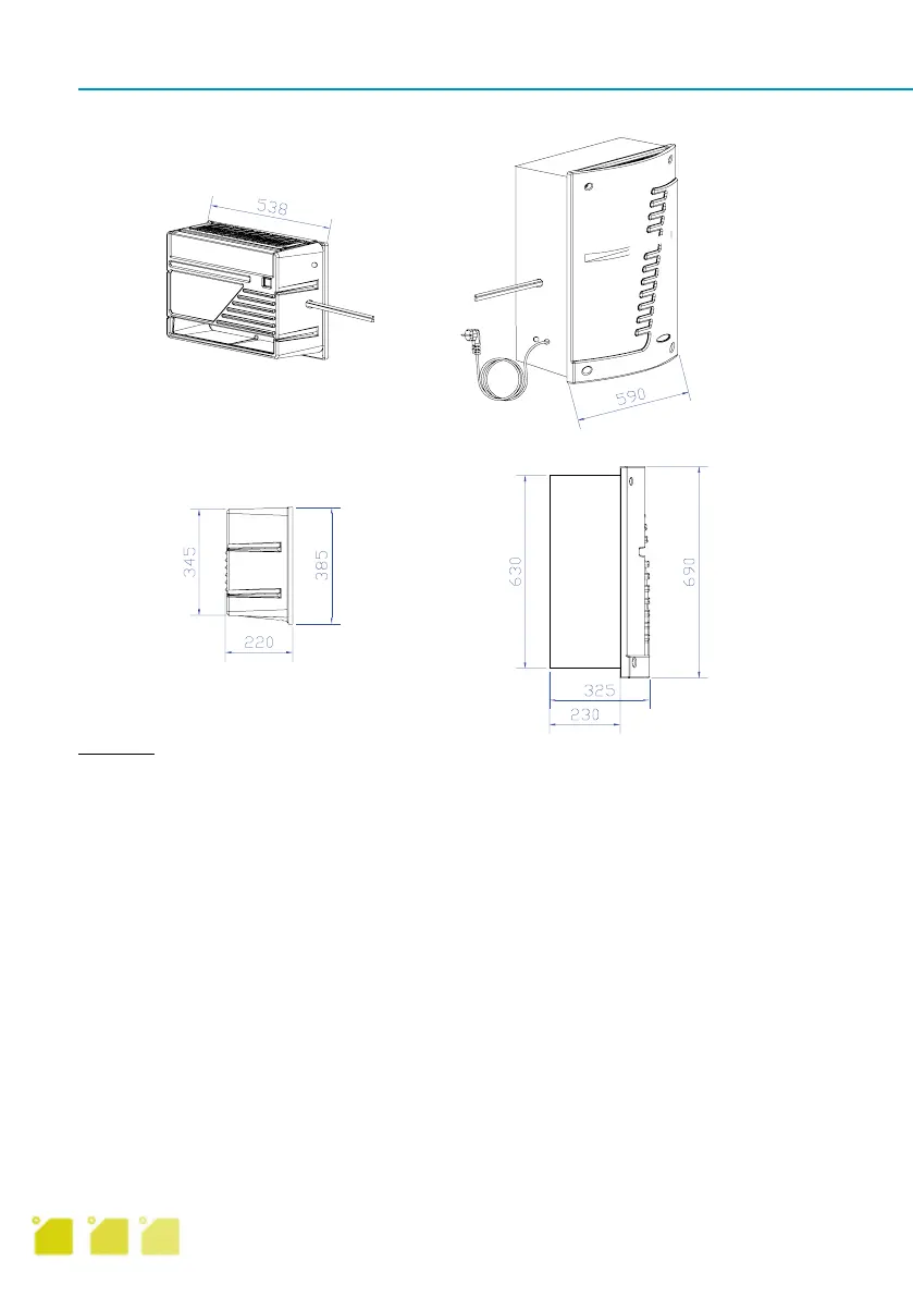 Utvändiga mått, varm del b590 x h690 x d325mm