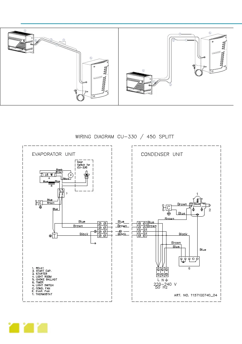 lämmorna på kondensatordelen. Kopplingsschemat sitter bakom en panel i kondensatordelen.