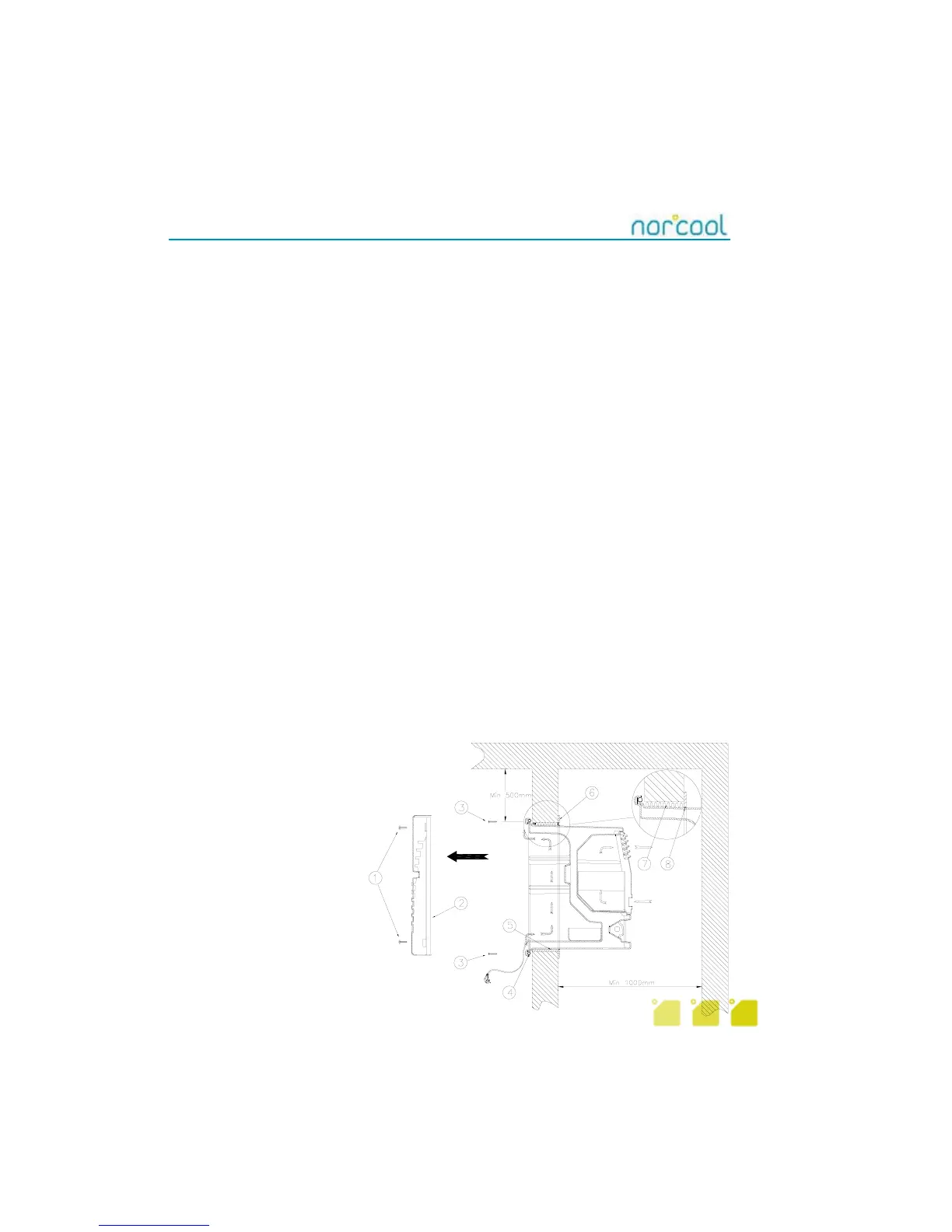 yksikön takaa. Kylmähuoneen seinien sisäpuolinen etäisyys pitää olla vähintään 1 m, jotta kylmä