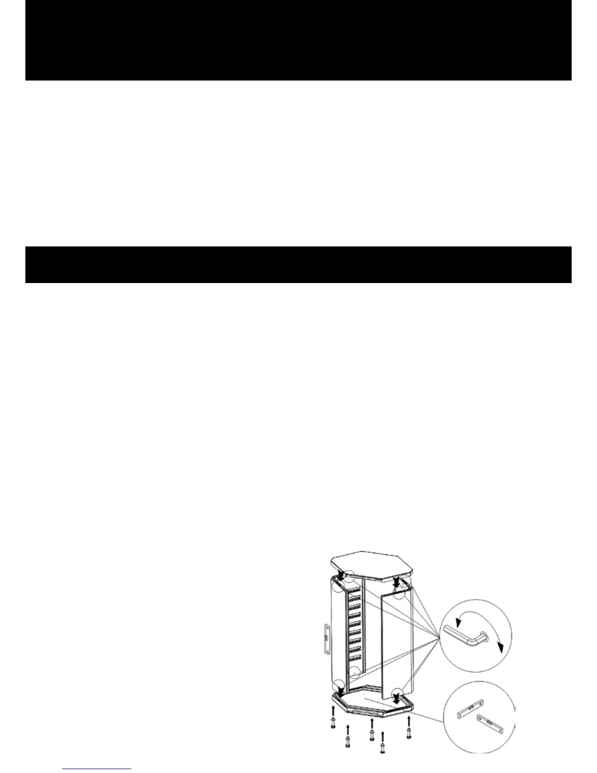 2. Sidevægge. Før sidevæggene monteres, skal du sørge for, at låsehagerne er drejet helt ind i låseanordningen. Drej låse-