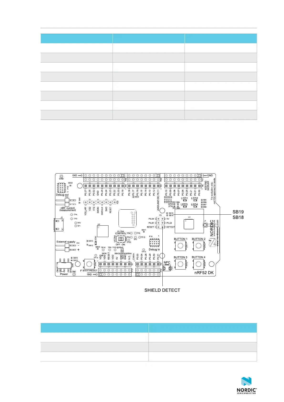 The I/O expander releases these GPIOs for general use when the nRF52 DK is used together with boards