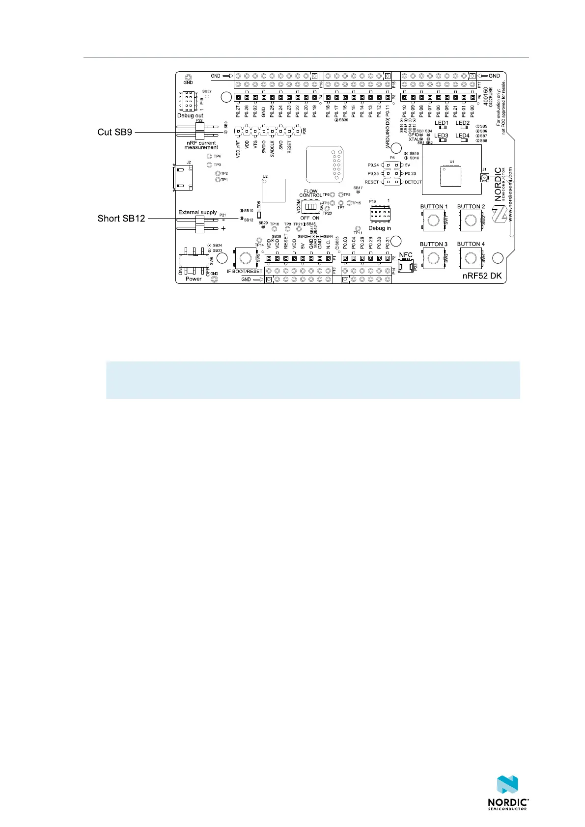 • To reprogram the nRF52832 SoC while the DK is prepared for current measurement, disconnect