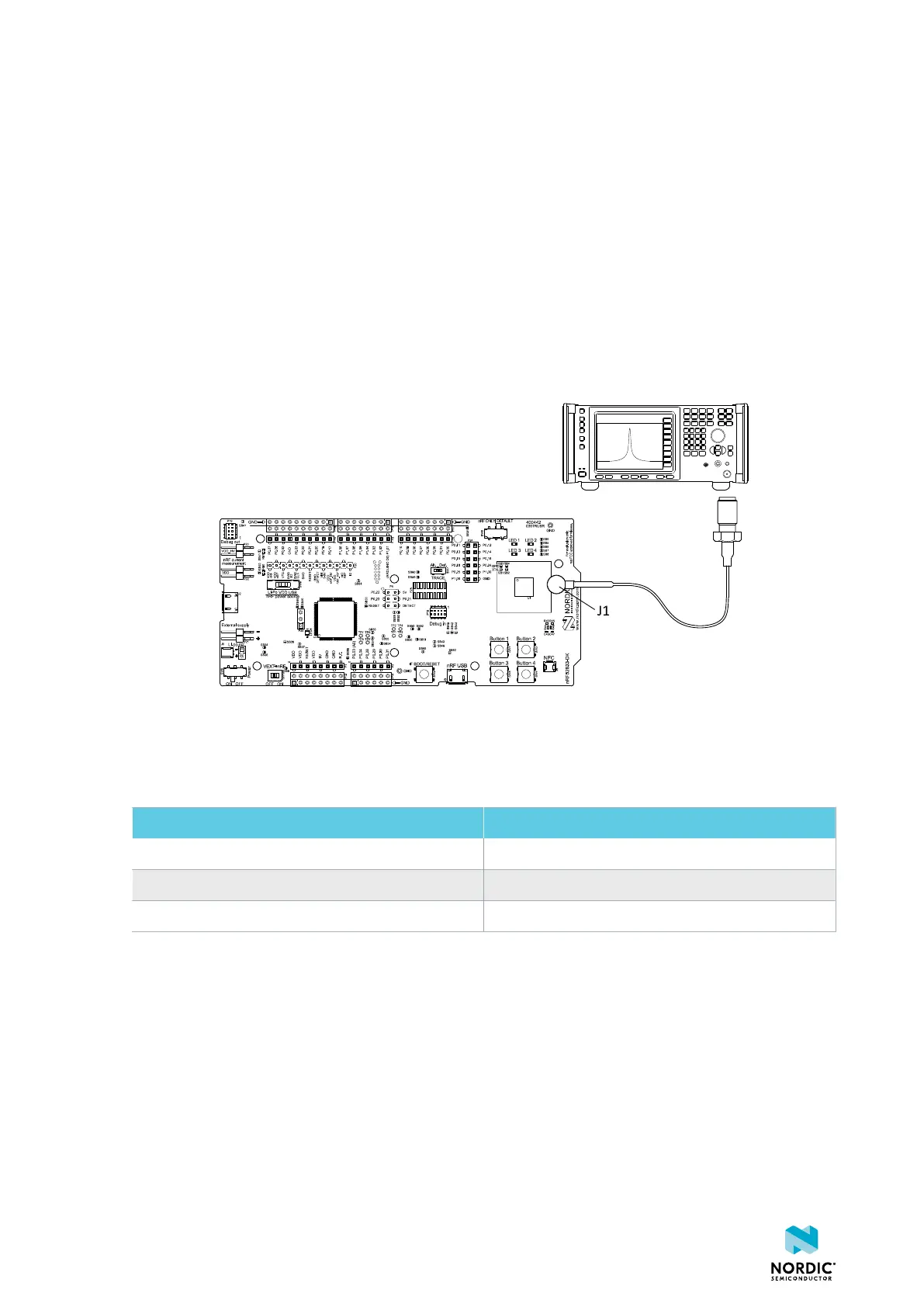 The nRF52833 DK board is equipped with a small coaxial connector (J1) for conducting measurements of
