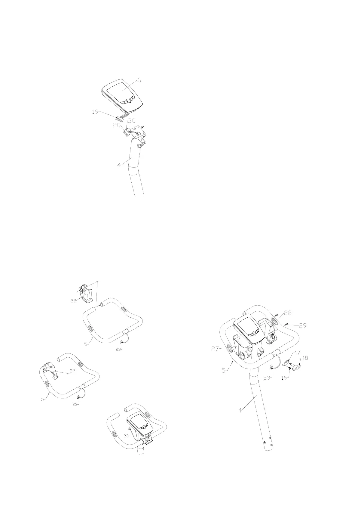 Handlebar(5), then using 2 screws(29) to fastened. Be sure of the Pulse wire(23) go through