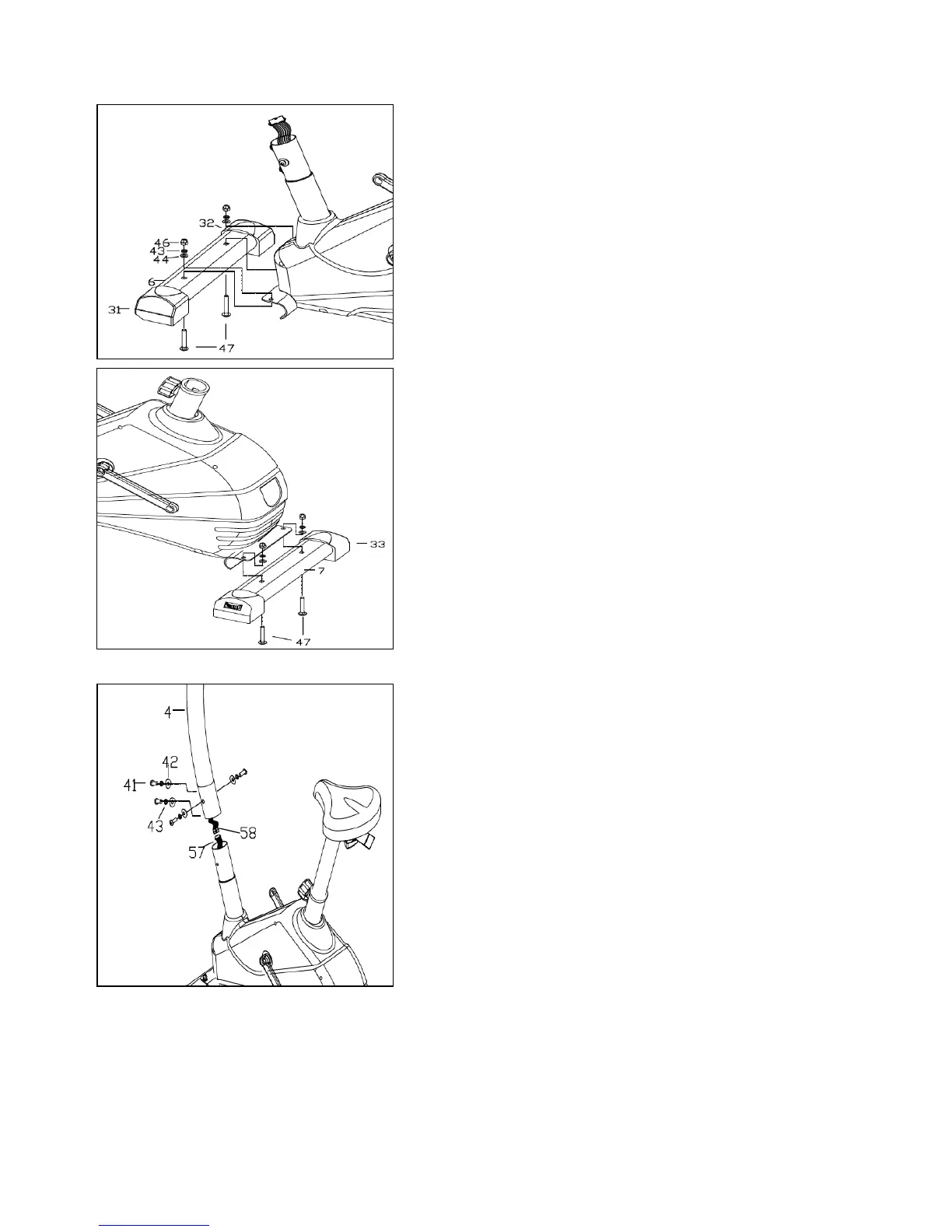 1. Fasten Front Foot (6) to the Base Frame (1) using 2 x (47),