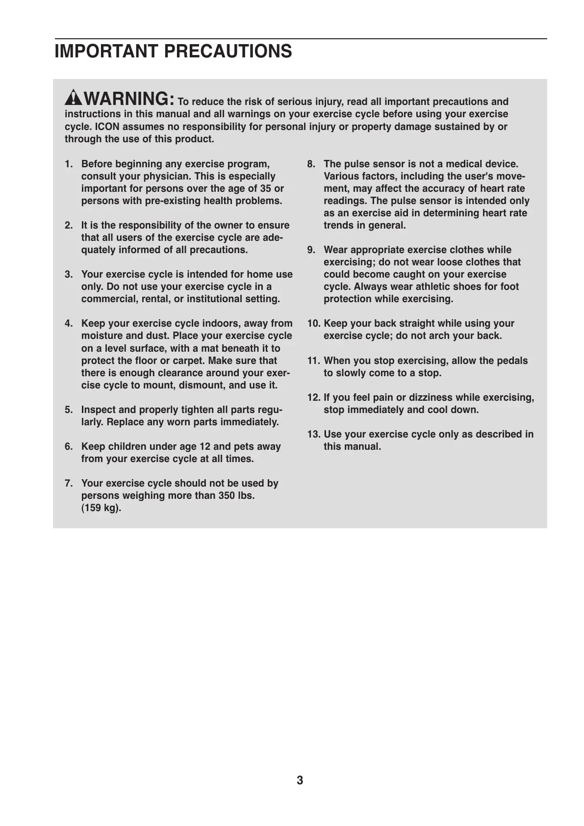 13. Use your exercise cycle only as described in