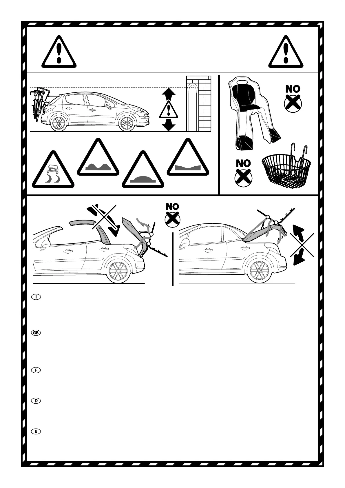 • Non utilizzare il portabici su strade sterrate e dissestate. Prestare molta attenzione a dossi e cunette.