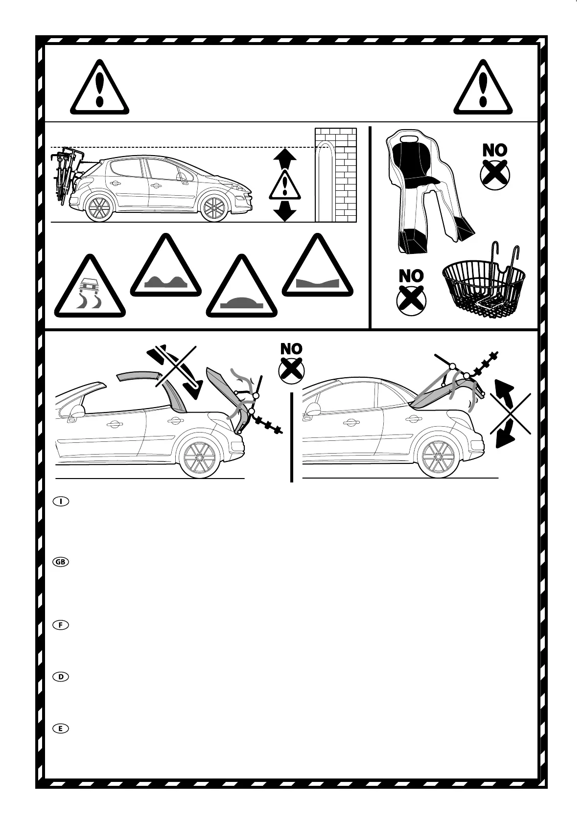 • Non utilizzare il portabici su strade sterrate e dissestate. Prestare molta attenzione a dossi e cunette.