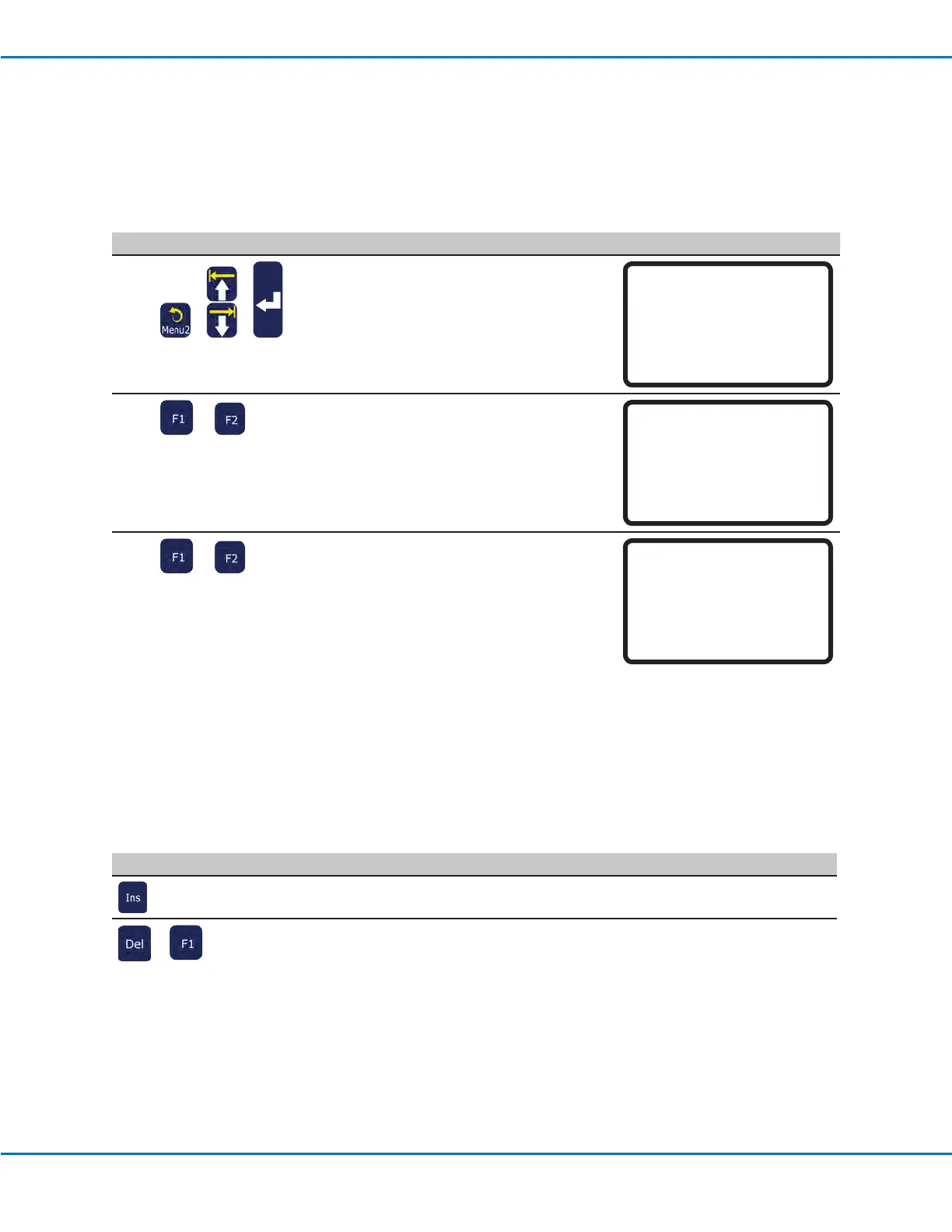 To insert a command, press INS. The command currently shown in the display increments by