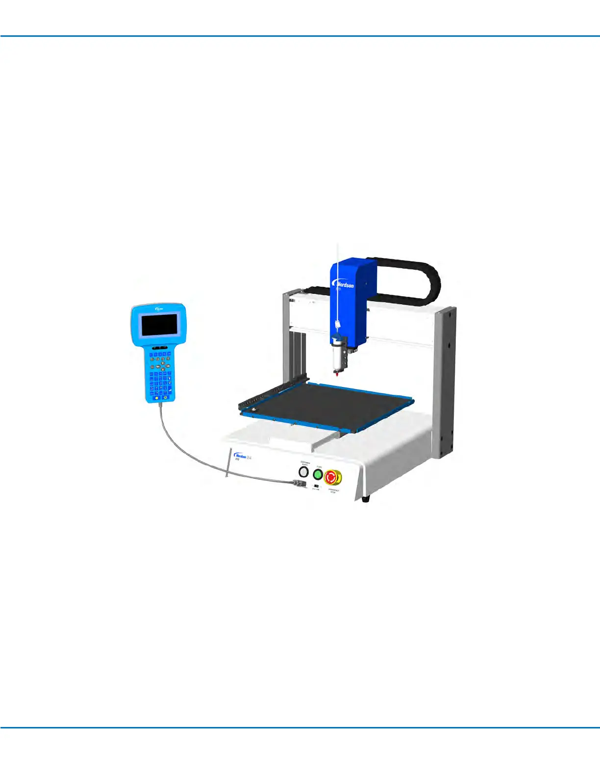 onto a workpiece. Programs are created and executed using the Teach Pendant. Material is dispensed through a