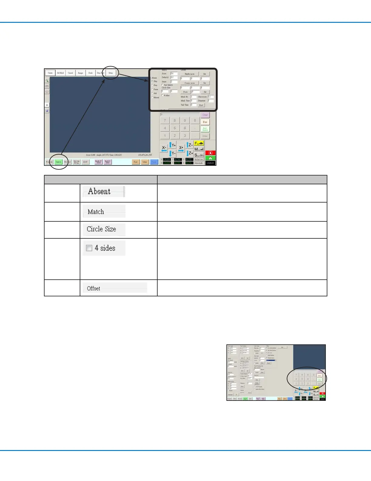 Used for system setup and calibration. Refer to “Setting the