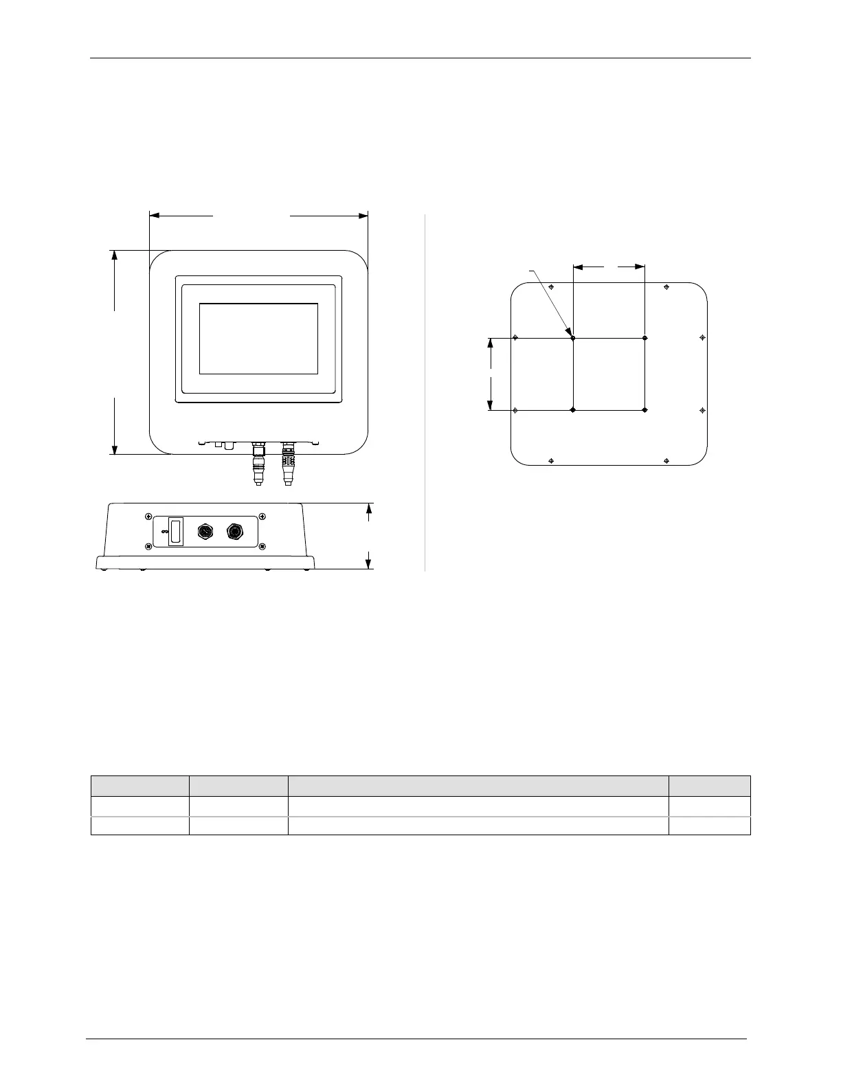 1. Touchscreen dimensions 2. Touchscreen mounting pattern