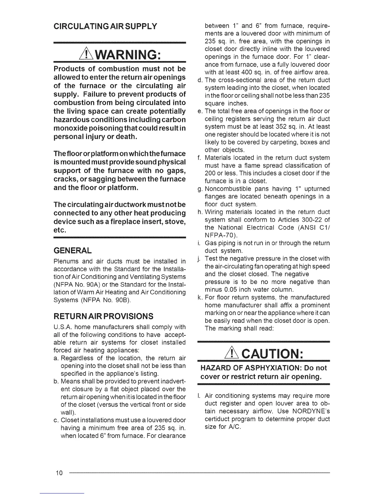 tain necessary airflow. Use NORDYNE's